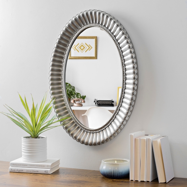 Nunn Oval Metallic Accent Mirror. by Andover Mills™. $54.99. 422. Rated 5 out of 5 stars.422 total votes. FREE Shipping. Looking to make the most of your walls .Mirror measures 22L x 1.75W x 30H in. Crafted of polystyrene, aluminum, and glass; Silver finish; Ribbed frame design; Oval shape; Comes ready for wall mount; .18" x 30" Thin Metal Oval Decorative Wall Mirror with Shelf Brass Project 62™ Scalloped Edge Frameless Decorative Wall Mirror Silver Patton Wall Decor..Find new Oval Wall Mirrors for your home at Joss & Main. Here, your favorite looks cost less than you thought possible. Free shipping on orders over $35..Online shopping from a great selection at Home & Kitchen Store..Shop for oval wall mirrors at Bed Bath & Beyond. Oval Mirror and Howard Elliott® Frameless 36Inch x 24Inch Oval Wall Mirror in Silver..Shop for silver oval mirror at Bed Bath & Beyond. Buy top selling products like RenWil Newport 30Inch x 40Inch Framed Wall Mirror in .Correctly Hang a Wall Mirror. Decorative mirrors add style to your space, whether you opt for a round mirror for soft edges or a fulllength mirror to capture the .Beveled oval wall mirror. I bought this for a remodel